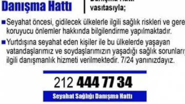 Hatipoğlu, erken teşhis konulan hastaların hayatta kalma şansının daha yüksek olduğuna işaret ederek, "Türkiye Hudut ve Sahiller Sağlık Genel Müdürlüğü olarak, bütün çalışanlarımızla gerek Ebola hastalığı olsun gerekse diğer bulaşıcı ve salgın hastalıklar olsun, bunlarla ilgili gerekli tedbirleri almış durumdayız. Ebola'daki tüm enfeksiyon riskleri hakkında, bu yıl 32'den 43'e çıkardığımız Genel Müdürlüğümüze bağlı Seyahat Sağlığı merkezlerimizden de bilgi alınabilir. Ayrıca www.seyahatsagligi.gov.tr internet sitemizden ve 7 gün 24 saat hizmet veren (0212) 444 77 34 numaralı Seyahat Sağlığı Danışma Hattı'ndan yararlanabilirler" diye konuştu.