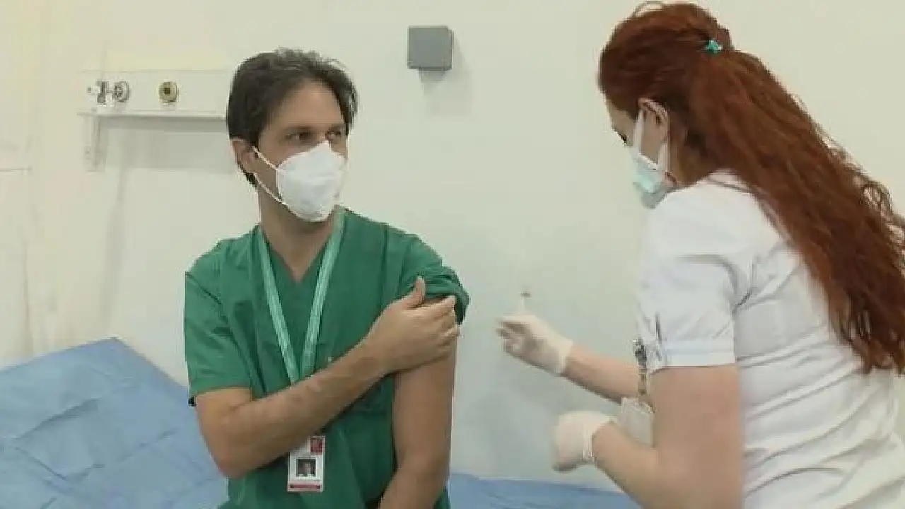 TRT Haber, Sultan Abdülhamit Han Eğitim ve Araştırma Hastanesi’nde sağlık personelinin aşılandığı anları canlı yayınla aktardı.