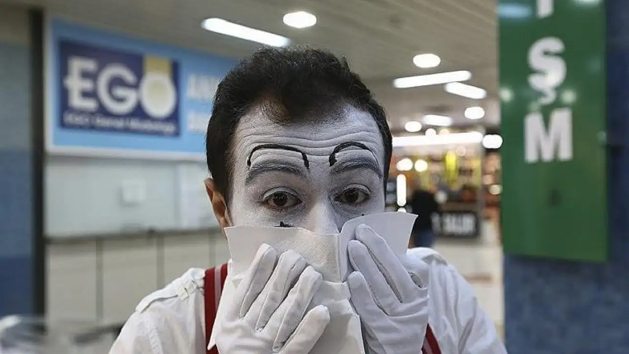 Sağlık Bakanlığı Sağlığın Geliştirilmesi Genel Müdürlüğü çalışanları, halkı bulaşıcı hastalıklarla mücadelede bilinçlendirmek için pandomim gösterisi yaptı.