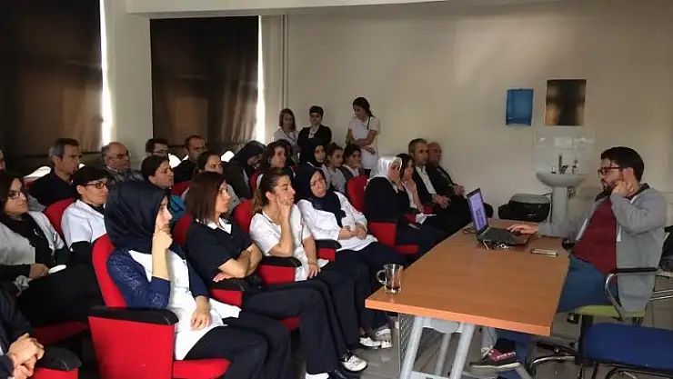 Hafta kapsamında dahiliye uzmanı Dr. Ali Topçu tarafından, hastanede görevli sağlık personeline diyabet hastalığına yönelik eğitim verildi.
