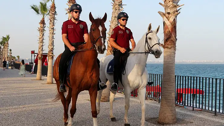 Antalya'da turizm sezonunun başlamasıyla birlikte sahillerde güvenliği sağlamak amacıyla atlı polis timleri devriye görevine başladı. Özellikle Konyaaltı Sahili'nde görev yapıp, asayiş olaylarına müdahale eden atlı polisler, vatandaşların yoğun ilgisiyle karşılaşıyor. Sahilde devriye gezen atlar arasındaki anne- kız "Babilon" ve "Filika" isimli atlar, sahilde dikkatleri üzerlerine çekiyor. Atlı Polis Birliği'ndeki 12 at her gün yaklaşık 1 saat eğitimden geçerken, profesyonel binicileri eşliğinde görevlere hazırlanıyor. Kalabalık etkinliklerde, konserlerde ve bayram günlerinde aktif rol alan atlı polisler, atların güçlü sezgisi sayesinde olaylara daha hızlı müdahale edebiliyor. Antalya emniyetinin özel timi, hem yerli hem yabancı turistlere güvenli ve huzurlu bir ortam sunmayı amaçlıyor.