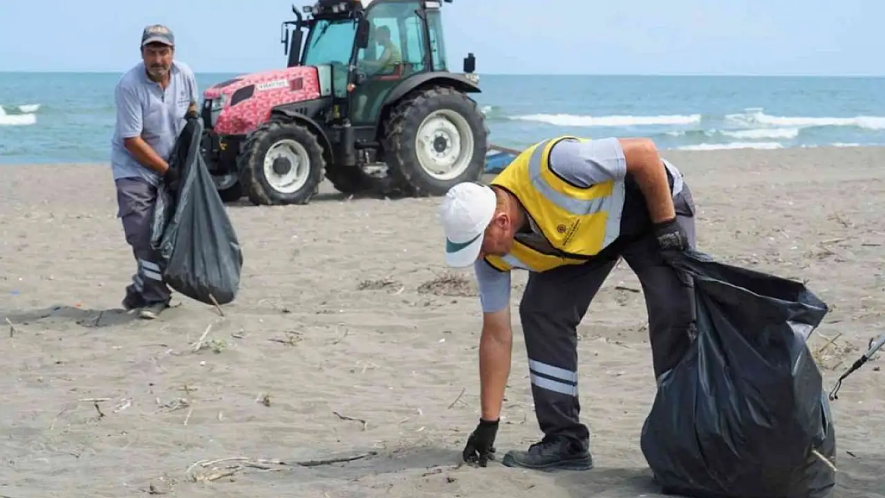 Samsun Büyükşehir Belediyesi, plaj ve kumsalları atıklardan arındırıyor.
