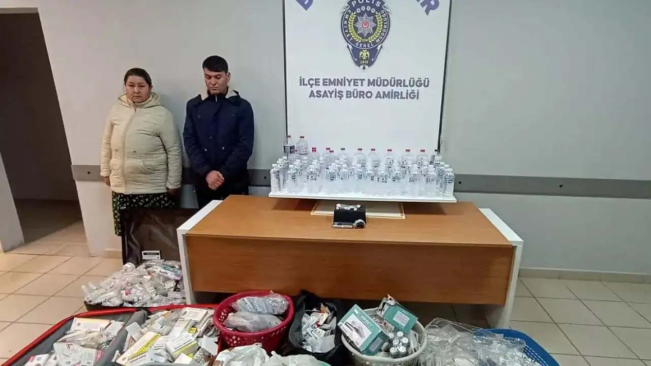 Bu kişilerin adreslerindeki aramalarda, yaklaşık 50 litre sahte içki, 36 uyuşturucu hap, 5 parça uyuşturucu madde, hassas terazi, Afyon sakızı, sahte olduğu değerlendirilen göçmen kimlik kartı ile çok miktarda tıbbi ilaç ele geçirildi.