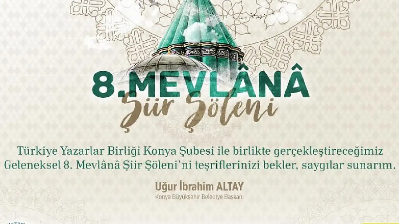 Türkiye Yazarlar Birliği (TYB) Konya Şubesi'nin Konya Büyükşehir Belediyesi ve Konya İl Kültür ve Turizm Müdürlüğü ile birlikte düzenlediği 8. Mevlânâ Şiir Şöleni, 30 Haziran Cumartesi akşamı saat 20.30'da Mevlânâ Gülbahçesi Açık Sema Alanı'nda gerçekleşecek. Tüm şiir severleri bu güzel etkinliğe davet eden TYB Konya Şube Başkanı Prof. Dr. Hayri Erten, Türkiye'nin dört bir yanından, edebiyat dünyasının yakından tanıdığı şairlerin, şiir şöleni vesilesi ile Konya'da buluşacaklarını belirtti. Erten, "TYB Konya Şubesi olarak yıl içinde gerçekleştirdiğimiz pek çok programın yanında, yıllardır sürdürdüğümüz ve artık geleneksel hale gelen programlarımız da yer alıyor. Bu yıl 8.'si gerçekleşecek Mevlânâ Şiir Şöleni de artık gelenekselleşen, sadece TYB Konya Şubesi'nin değil, Konya'nın da önemli buluşmalarından birisidir. Programımıza büyük destek ve katkı veren Konya Büyükşehir Belediyesine teşekkür ediyor, tüm şiir dostlarını etkinliğimize davet ediyorum" dedi.