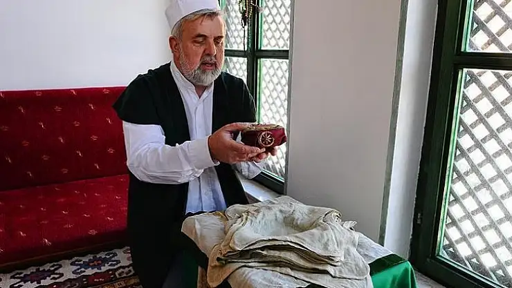 Travnik'te türbedarlık yapan, Sakal-ı Şerif'i muhafaza edenlerden Esad Bazdalic, Sakal-ı Şerif'in getirildiği orijinal kutusunda, 19 ayrı özel kumaşa sarılı olarak korunduğunu söyledi.