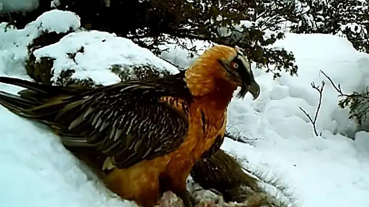 Türkiye'de yaşayan en nadir akbaba türü olan ve leşlerin kemik parçalarıyla beslenen sakallı akbaba fotokapanla görüntülendi.