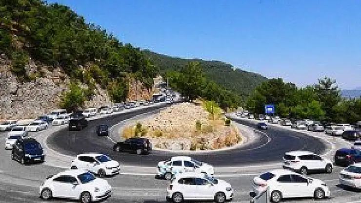 Ramazan Bayramı’nın ikinci gününde Akyaka Mahallesi’nde özelikle yakın illerden gelen günübirlik ziyaretçiler nedeniyle 12 kilometre çift şerit kuyruk oluşurken, trafik ekipleri yoğunluğu azaltabilmek amacıyla saatlerce çalışma yaptı.