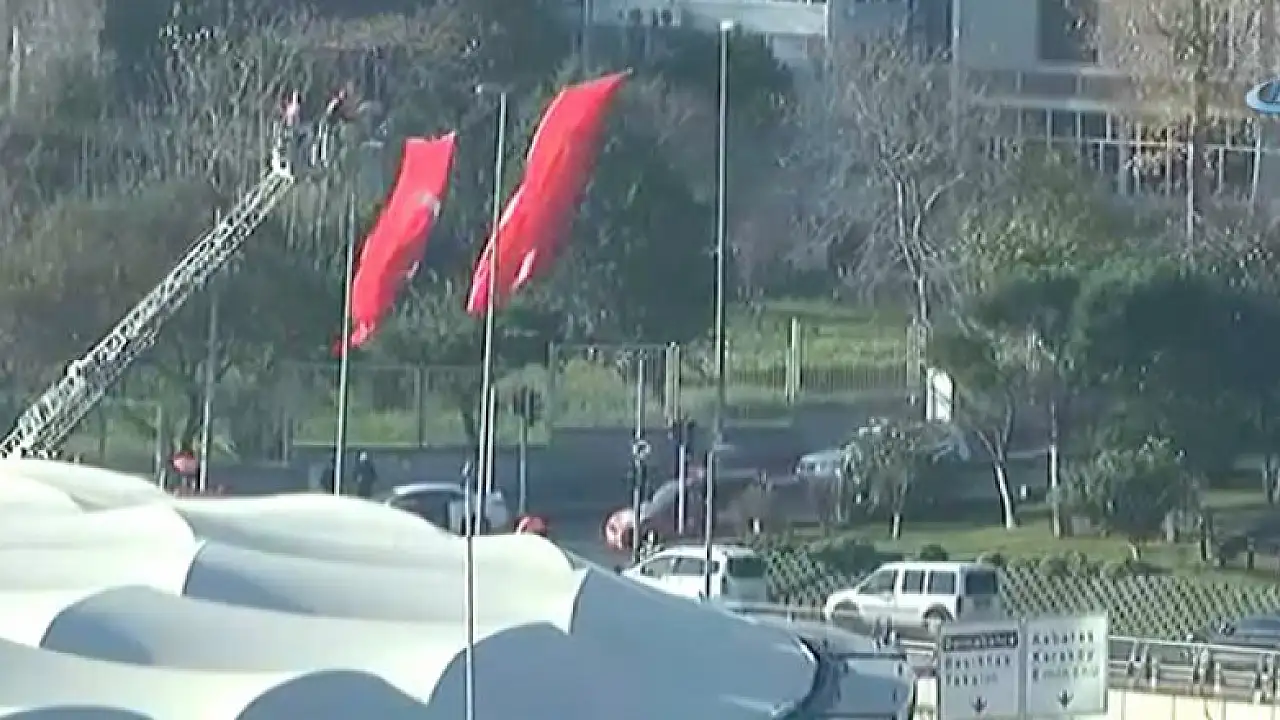 Saldırının gerçekleştiği alana dev Türk bayrakları