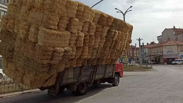Afyonkarahisar'da saman balyası yükle bir kamyonet adeta kazaya davetiye çıkarcasına trafikte ilerledi. Yürükleri ağza getiren görüntülerde saman yüklü kamyonetin sürücülerin hayatını hiçe saydığı görüldü.