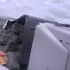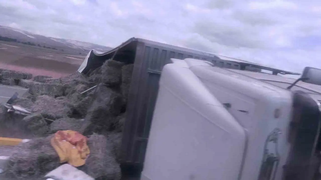 Sivas'ta saman yüklü tırın devrilmesi sonucu meydana gelen kazada sürücü kazayı yara almadan atlattı.