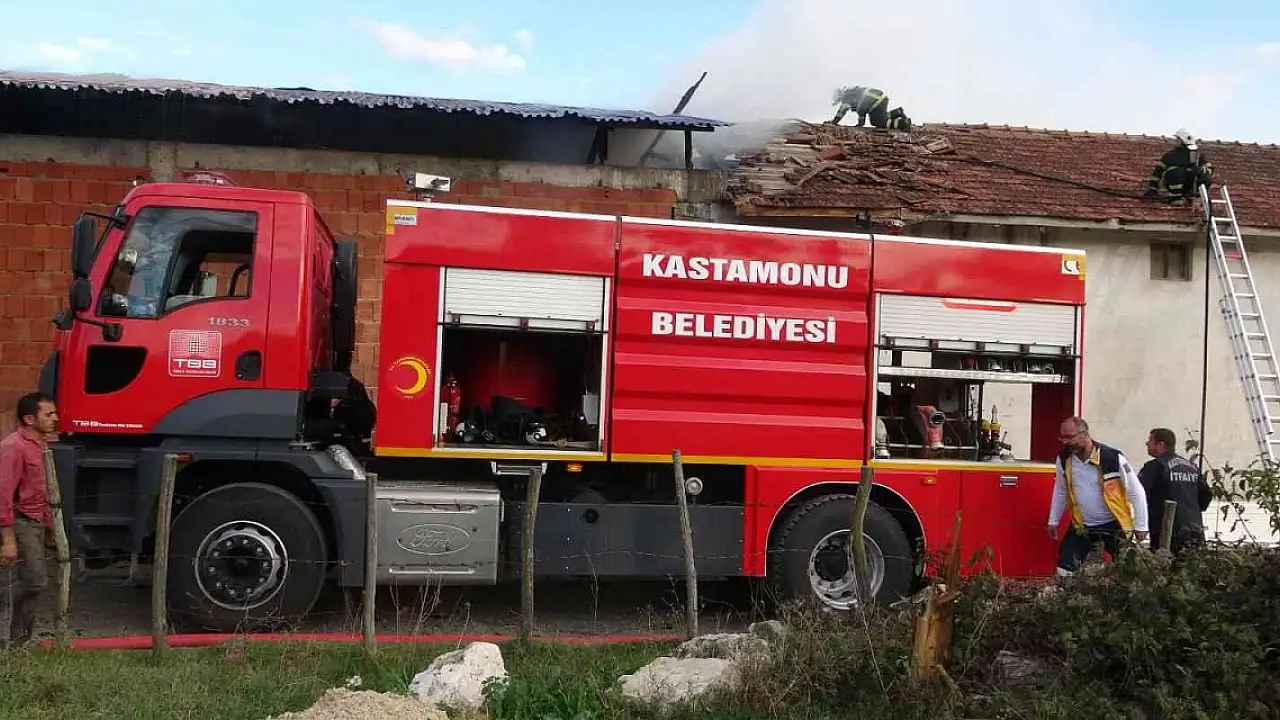 Kastamonu'da tadilat yapılan samanlıkta çıkan yangında bin 200 saman balyası, 20 ton arpa, 15 ton buğday ve bir römork yandı.