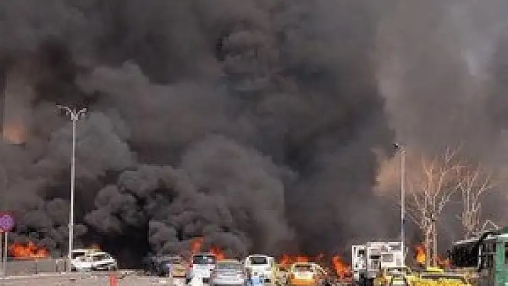 Saldırıda birçok binanın zarar gördüğü, bazı araçların yandığı ifade edildi.