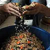 Çevik, hazırladığı karışımın çok pahalı olduğunu vurgulayarak, "karışımın içinde meyve, sebze ve tahıllar bulunuyor. Bunun üzerine de pekmez döküyoruz. Atın güçlü olabilmesi için vitaminleri de kullanıyoruz. Bu karışımın içinde 5 farklı vitamin var. Bu karışım, atımızın gücüne güç katıyor" şeklinde konuştu.