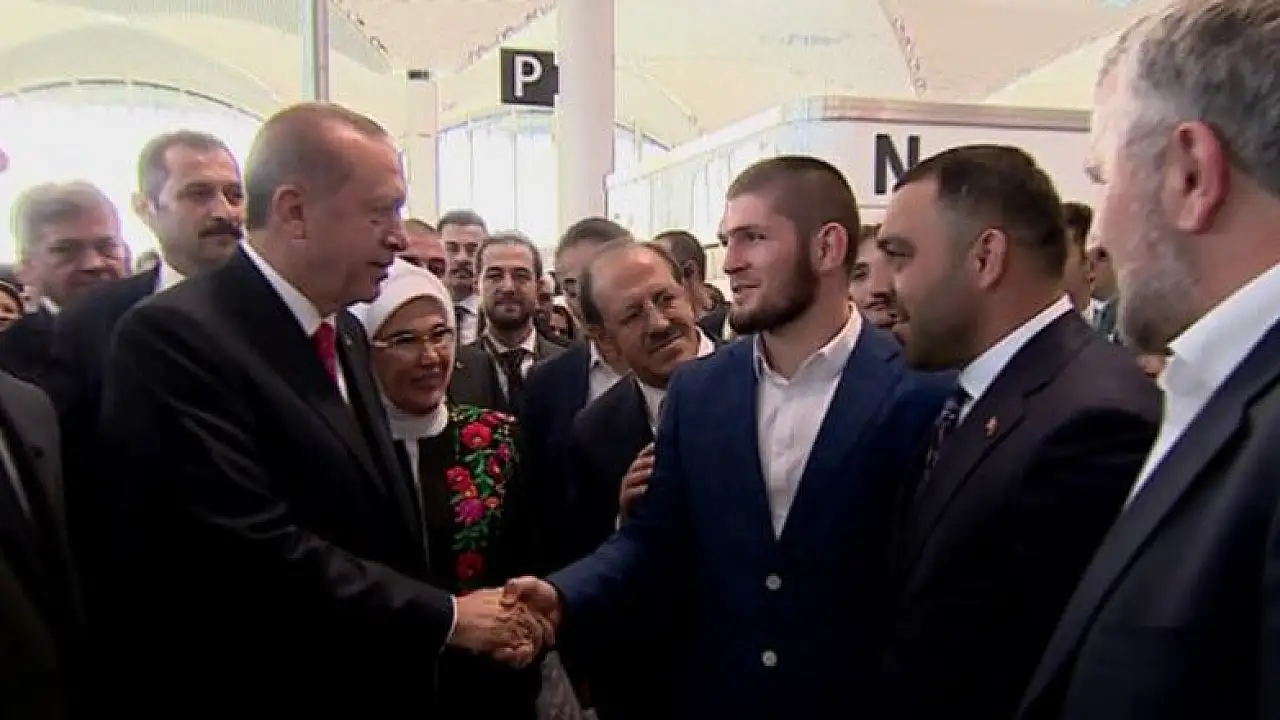Rusya Devlet Başkanı Vladimir Putin'in de ağırladığı Khabib'e Cumhurbaşkanı Erdoğan'dan İstanbul Yeni Havalimanı açılışına katılması için davet gitmişti.