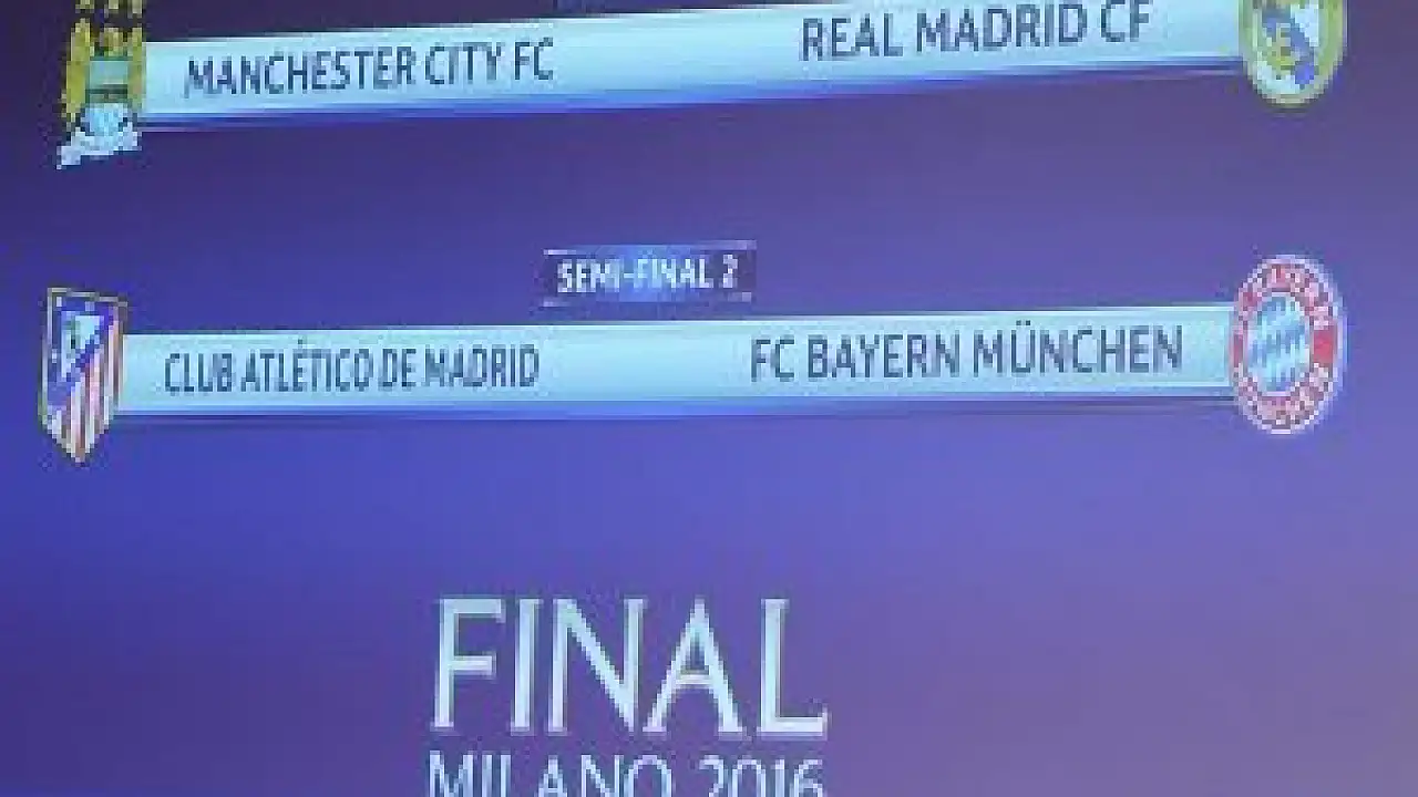 UEFA Şampiyonlar Ligi yarı finalinde Manchester City ile Real Madrid, Atletico Madrid ile Bayern Münih eşleşti.