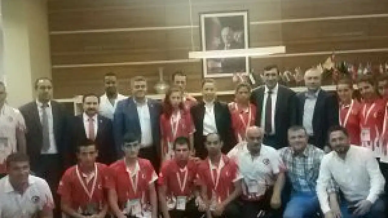 Türkiye Özel Sporcular Spor Federasyonu yöneticileri ve milli sporcular, Avrupa Atletizm Şampiyonası öncesi, AK Parti Engelliler Koordinasyon Merkezi Başkanı ve Konya Milletvekili Prof. Dr. Hacı Ahmet Özdemir’i Parti Genel Merkezi’nde ziyaret ettiler.