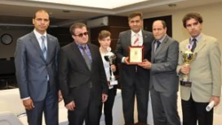 Türkiye Görme Engelliler Spor Federasyonu Üyesi ve Konya İl Temsilcisi Mustafa Candemir ile Mevlana Engelliler Spor Kulübü Başkanı Emre Boz ve Judo’da yılın sporcusu seçilen görme engelli Ayşe Gül Bilgili, Meram Belediye Başkanı Dr. Serdar Kalaycı'yı makamında ziyaret ederek, şampiyonluk kupasını takdim ettiler.