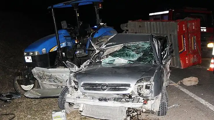 Çarpmanın etkisiyle savrulan Keskin idaresindeki otomobil aynı yönde seyir eden Ahmet Keskin'in kullandığı 55 PE 778 plakalı traktöre arkadan çarptı.