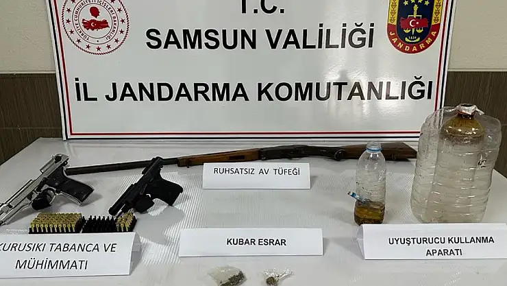 Çarşamba Cumhuriyet Başsavcılığı tarafından yürütülen soruşturma kapsamında İlçe Jandarma Komutanlığı, İlçe Emniyet Müdürlüğü Narkotik Suçlarla Mücadele Şube Müdürlüğü, Merkez JASAT ekiplerince uyuşturucu madde sattığı iddia edilen şüphelilere ait 16 ev ve iş yerine eş zamanlı operasyon düzenlendi. Ev ve iş yerlerinde yapılan aramada 6 gram metamfetamin, 3 gram kubar esrar, uyuşturucu kullanmaya yarayan düzenekler, 47 sentetik ecza hapı, ruhsatsız tabanca, ruhsatsız av tüfeği, 2 kurusıkı tabanca ve 70 mermi ele geçirildi. Operasyonda 13 şüpheli gözaltına alındı.