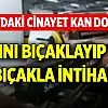 E.A aynı bıçakla bu kez kendini sol göğüs kısmının 4 yerinden yaraladı. Kadının kendini evden dışarı atıp yardım istemesi üzerine olay yerine ambulansla ve polis ekipleri sevk edildi.