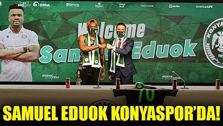 Konya Büyükşehir Belediye Stadyumu Basın Toplantı Salonunda gerçekleşen imza törenine kulüp menajeri Seçkin Özdil ile yeni transfer Samuel Eduok katıldı.