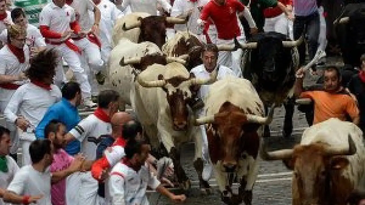 San Fermin'de 8 gün sürecek insanların boğalarla sokakta koşması geleneğinin ilki bugün yapıldı.