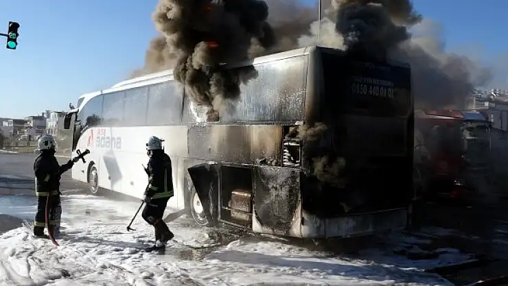 ANTALYA'da sanayiden çıktıktan sonra otogara yolcu almak için giden şehirlerarası yolcu otobüsü alev alev yandı. Can kaybının yaşanmadığı olayda yolcu otobüsü kullanılamaz hale geldi.