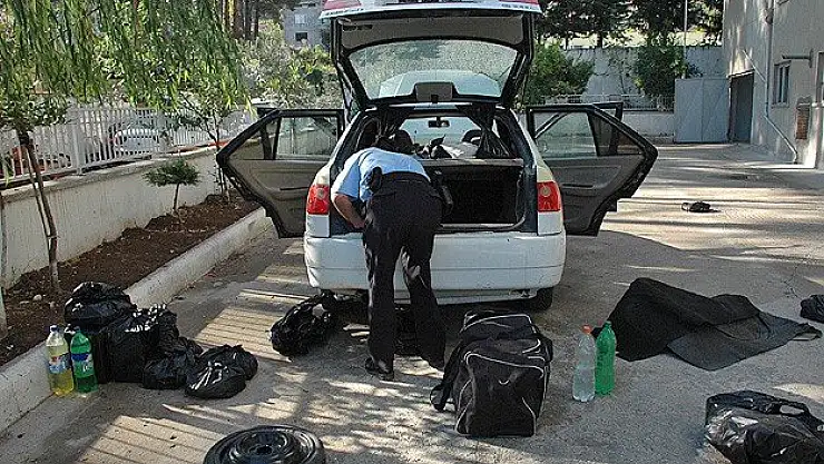 Otomobilin bagajında yapılan aramada ayakkabı kutusuna yerleştirilmiş uzaktan kumandalı bomba düzeneği tespit edildi.