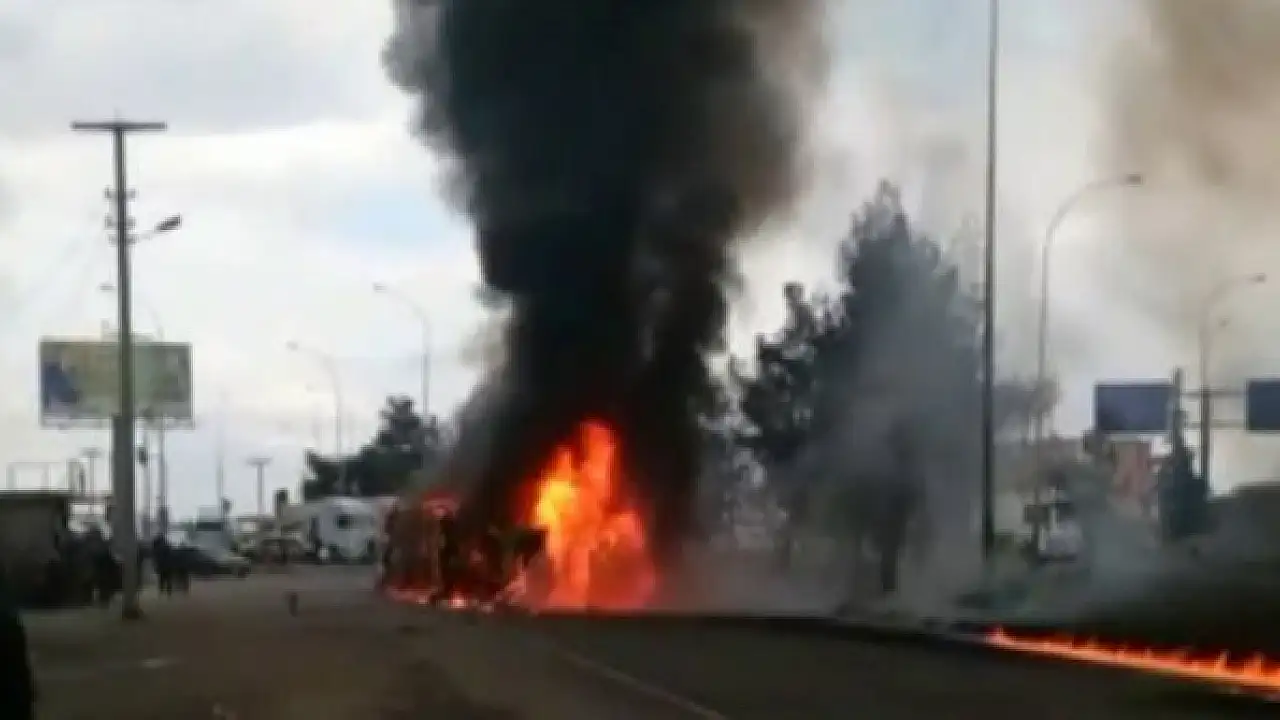 Şanlıurfa'nın Viranşehir ilçesinde devrilen tır, alev topuna döndü. Araçtaki 4 yaralı son anda kurtarılırken, tırda yaşanan patlama ve yangın güvenlik kamerasına yansıdı.