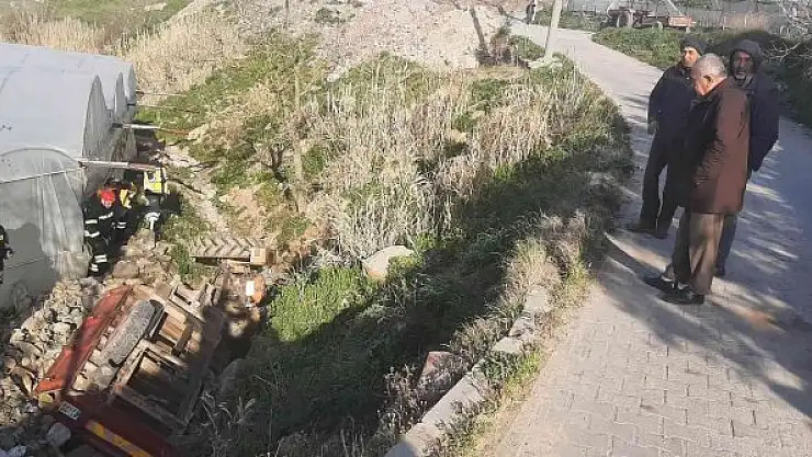 Manisa'nın Akhisar ilçesinde sürücüsünün direksiyon hakimiyetini kaybettiği traktör şarampole yuvarlandı. Devrilen traktörün altında kalan sürücü hayatını kaybetti.