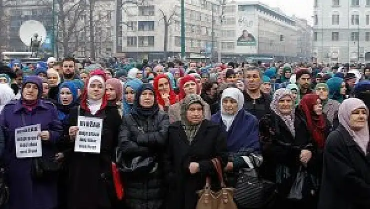 Başkent'teki Başçarşı Meydanı'nda toplanan yüzlerce başörtülü kadın, Bosna Hersek Hakimler ve Savcılar Yüksek Kurulu'nun (VSTV) yargı çalışanlarına, başörtüsünü de içine alacak şekilde "dini sembolleri" yasaklaması kararına tepki gösterdi.