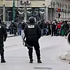 Cumhurbaşkanlığı binası önünde toplanan göstericiler, şehrin en işlek caddelerinden Mareşal Tito Caddesi'nde elele vererek araç trafiğini engelledi.
