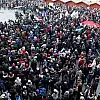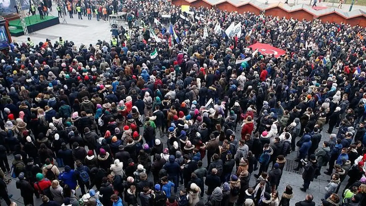 Bosna Hersek ve Türk bayraklarıyla mitinge katılan kalabalık grup, "Müslüman uyuma, kardeşine sahip çık" sloganları ve tekbirler eşliğinde Suriye halkına yardım çağrısında bulundu.