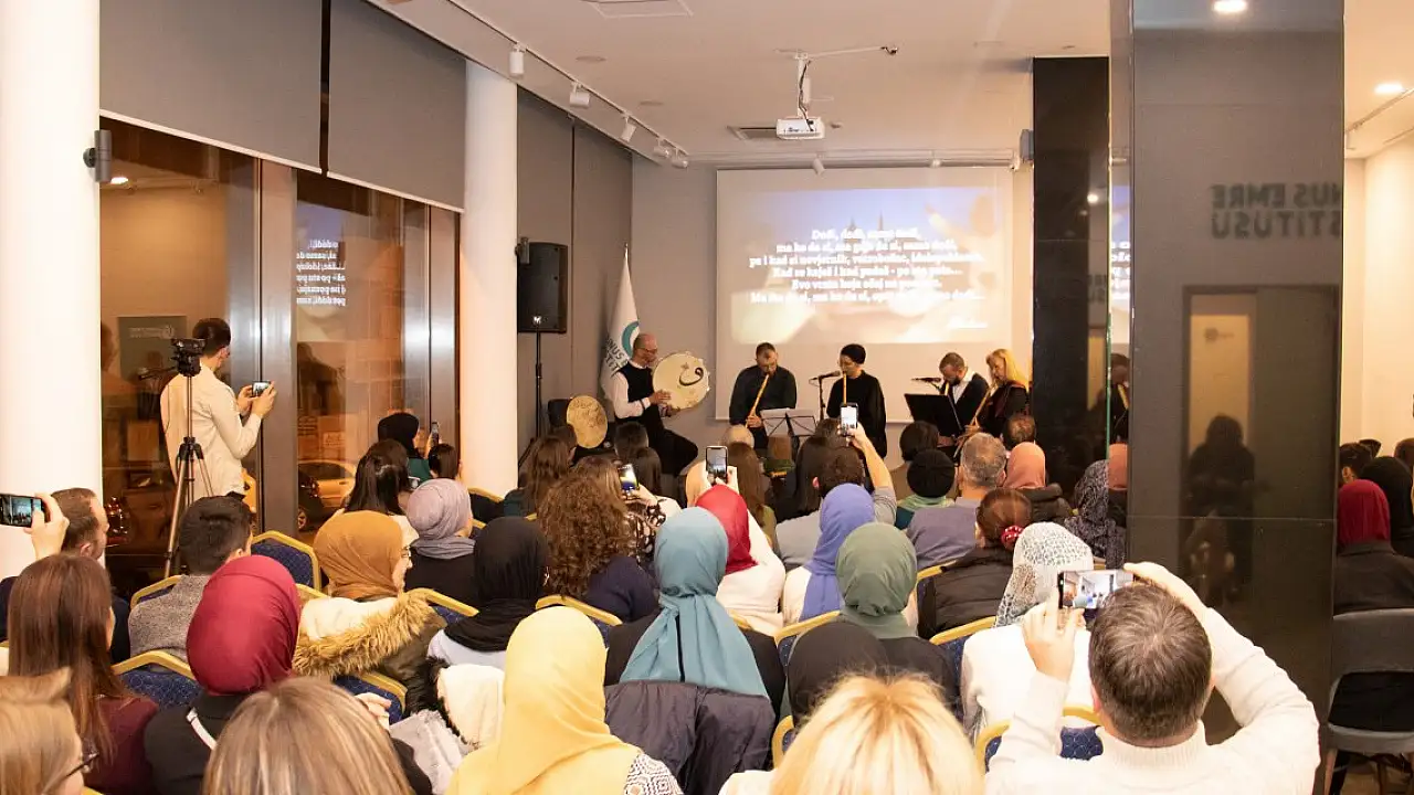 Saraybosna Yunus Emre Enstitüsü işbirliğinde gerçekleşen konserde, kursa devamlı gelen ve kendini belli seviyede yetiştiren kursiyerler sahne aldı. Hazreti Mevlana’nın 749. Vuslat Yıl Dönümü Uluslararası Anma Törenleri kapsamında organize edilen konser, salavatlarla başladı. Saraybosna Mevlevihanesi’nde 1936 yılında çekilen videolar eşliğinde devam eden konserde, ilahiler seslendirildi.