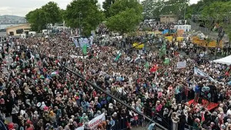 İHH Başkanı Bülent Yıldırım, Mavi Marmara gemisine saldırının 4. yılında da on binlerce kişinin bir araya geldiğini belirterek, "Bugün İsrail'e şu mesajı veriyoruz; Mavi Marmara'yı unutmadık ve unutturmayacağız" dedi.