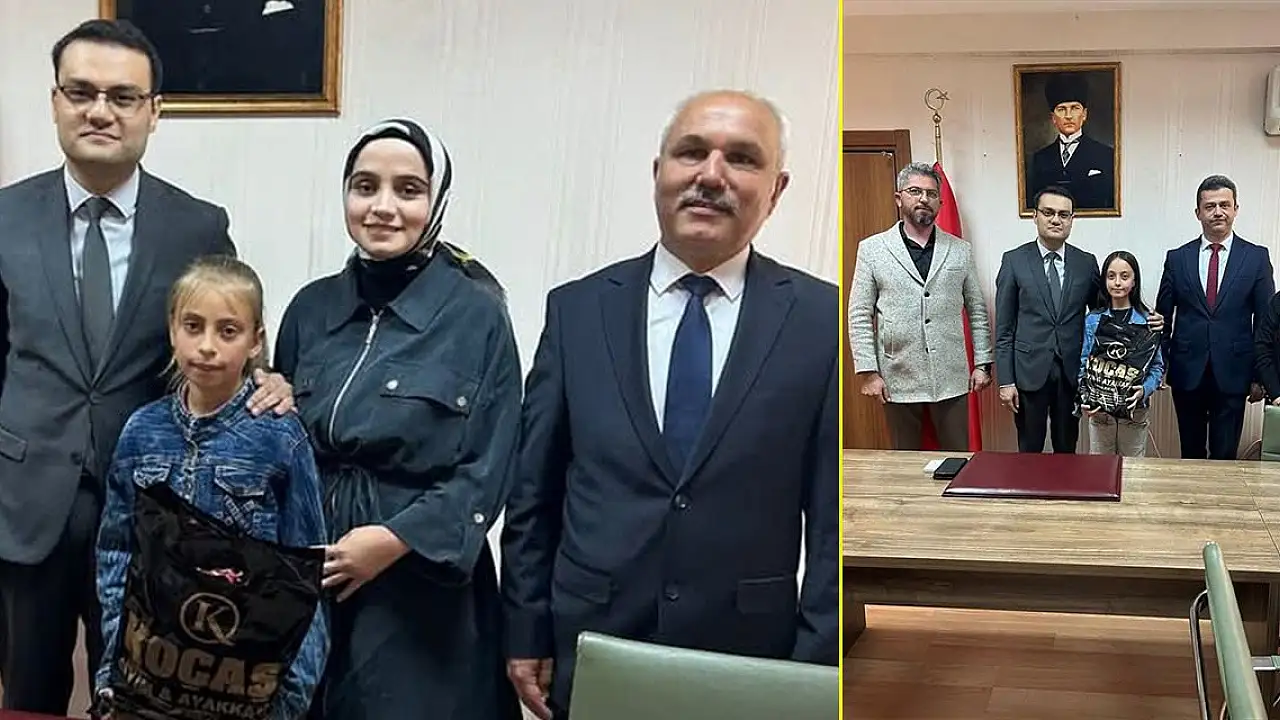Öğrenciler, Kaymakam Abdullah Huzeyfe Çakmak, İlçe Belediye Başkanı Necati Koç ve İlçe Milli Eğitim Müdürü Ömer Yavuz'u makamında ziyaret ederek, hazırladıkları kitabı takdim etti.
