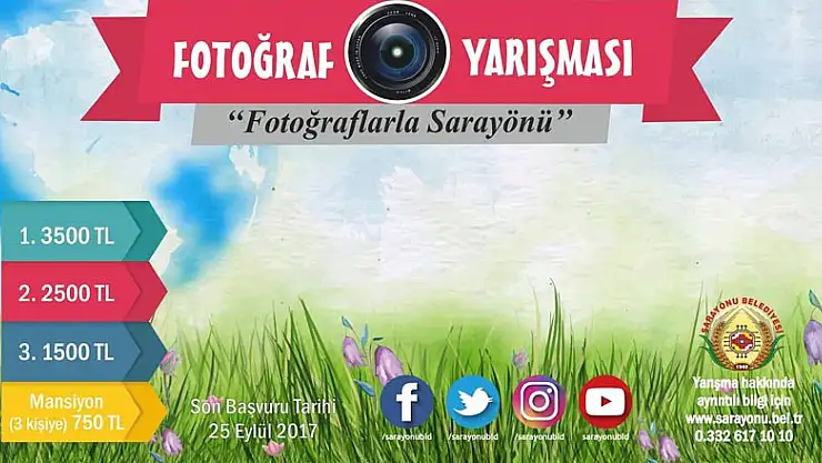 Sarayönü Belediyesi tarafından başlatılan ödüllü ulusal fotoğraf yarışmasında sona doğru yaklaşılıyor. İlçenin doğal, toplumsal ve kültürel dokusuna dikkat çekmek amacıyla tertip edilen yarışma, 25 Eylül 2017 tarihinde sona erecek.