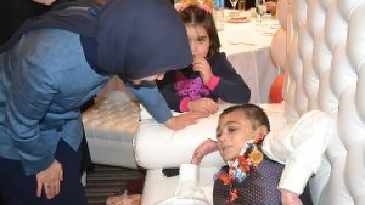 Bedensel engelli yakını Resul Can Dığrak (13) için Hilton Garden Inn Otel'de gerçekleştirilen sünnet törenine iştirak eden Davutoğlu, altın hediye ettiği Dığrak ile bir süre sohbet etti.