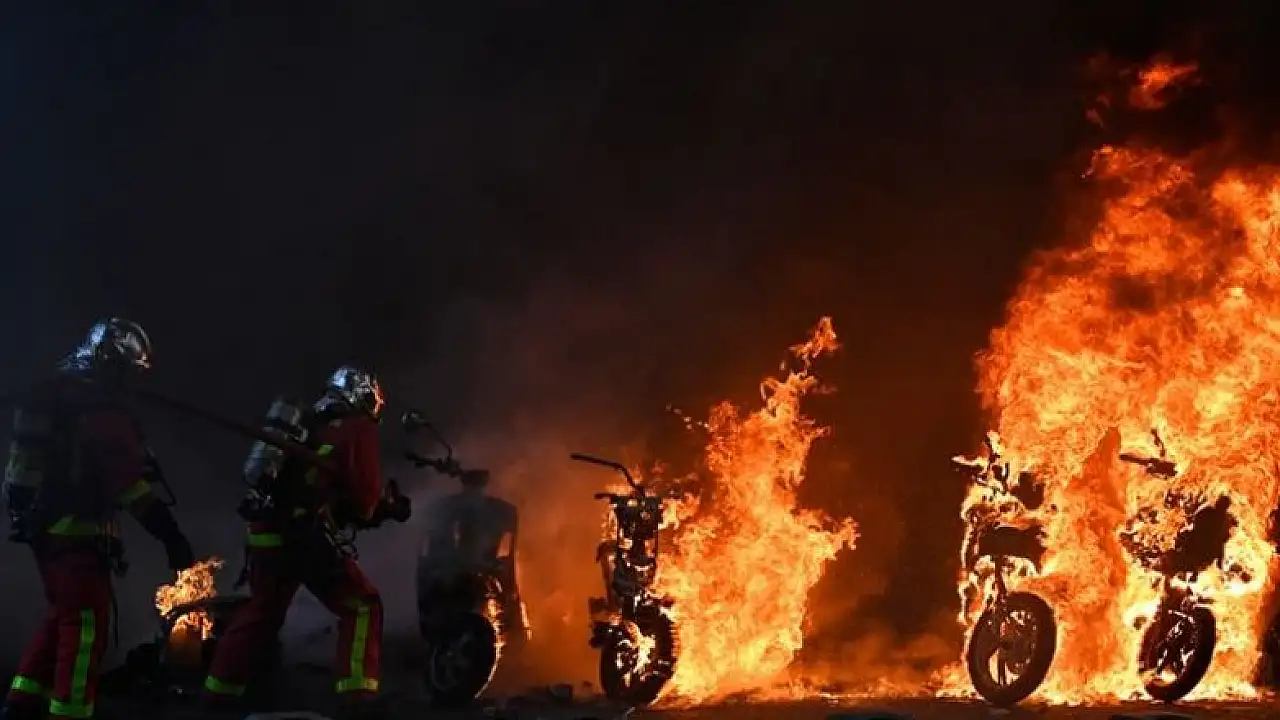 Fransa'da sarı yeleklilerin Cumhurbaşkanı Emmanuel Macron yönetiminin politikalarını protesto etmek için ülke genelinde düzenlediği eylemler, 23. haftasında Paris'teki Place de la Republique'de devam etti. Göstericiler çöp kutularını ve park halindeki motosikletleri ateşe verdi. ( Mustafa Yalçın - Anadolu Ajansı )