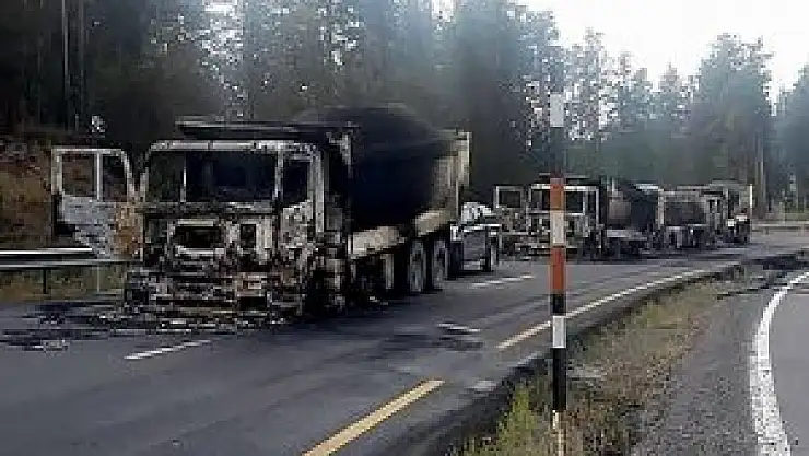 PKK mensubu bir grup terörist, Sarıkamış-Erzurum karayolunun Mescitli mevkisinde dün akşam seyir halindeki 4 kamyonu durdurmuş, araçlardan indirdikleri sürücülerin cep telefonlarını alan teröristler, bir süre örgüt propagandası yaptıktan sonra kamyonları ateşe vermişti.