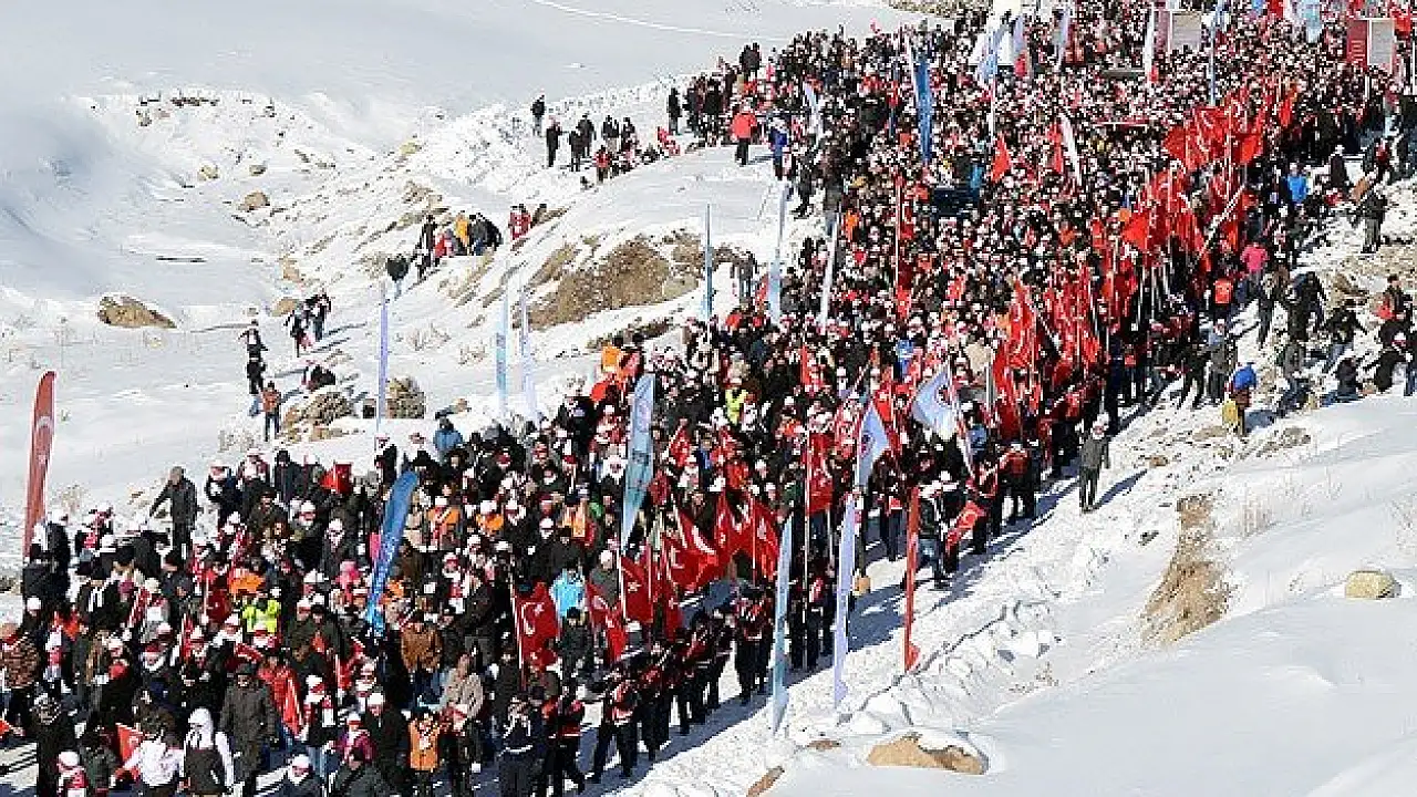 Sarıkamış Harekatı'nın 100. yılı etkinlikleri kapsamında düzenlenen anma yürüyüşü, TBMM Başkanı Cemil Çiçek ile Gençlik ve Spor Bakanı Kılıç'ın katılımıyla başladı.