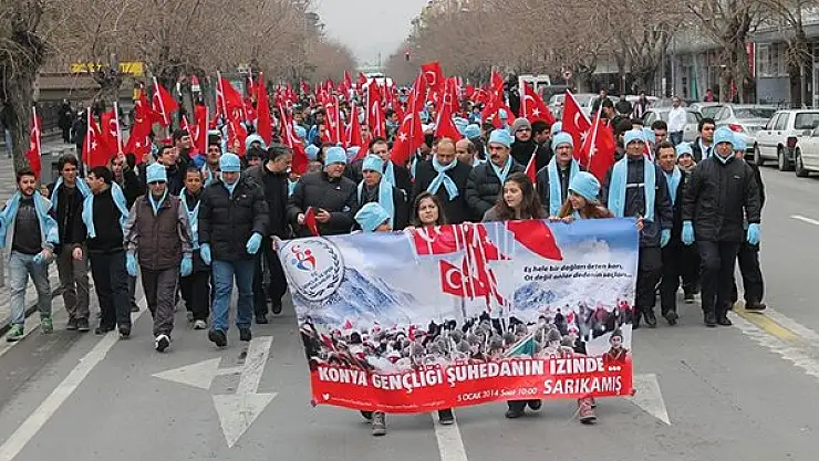 Bu yıl ikincisi düzenlenen "Sarıkamış Şehitlerini Anma Yürüyüşü" etkinliği yurdun dört bir yanında gerçekleştirildi.Konya'daki yürüyüş ise stadyum önünde başladı. Yaklaşık 3 kilometreyi bulan yürüyüş, Anıt meydanı, SGK İl Müdürlüğü ve İstasyon'dan sonra başladığı noktada son buldu.