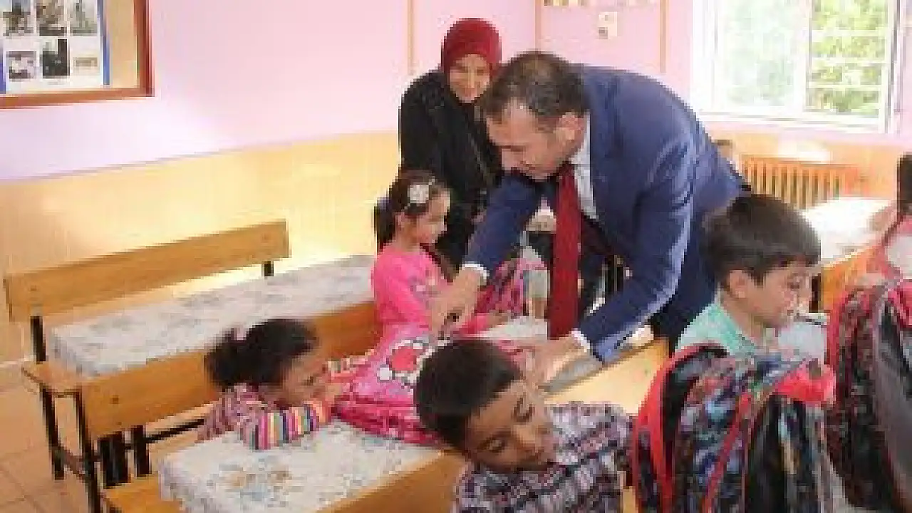 Yeni eğitim - öğretim yılının ilk gününde ilçedeki okulları tek tek gezen Sarıkaya Belediye Başkanı Ömer Açıkel, 1. sınıf öğrencilerine kırtasiye malzemesi dağıttı.