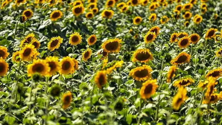 Türkiye'nin sıvı yağ ve kuruyemiş üretiminde önemli bir yere sahip olan ayçiçeği çiçek açmasıyla tarlalar sarıya boyandı.