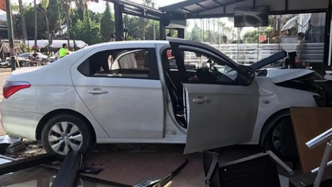 Bu sırada kavşaktan dönen hafif ticari araca çarpan otomobil, önce kaldırıma çıkarak 2 yayaya çarptı, sonra bir restorana girdi.