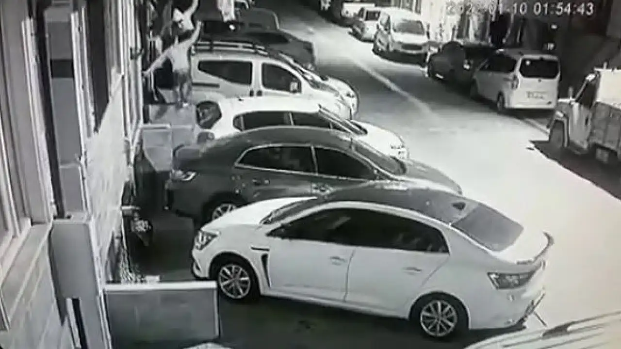Yaşanan anlar güvenlik kamerası tarafından kaydedildi. Görüntülerde bir kadın 2 şüphelinin sokakta dolaşması ve sonrasında balkonda asılı battaniyeye ulaşmak için zıplamaları görülüyor. Görüntülerin devamında ise kadın şüphelinin erkek şüphelinin yardımıyla aracın üstüne çıkıp battaniyeyi aşağıya doğru çekmesi görülüyor.
