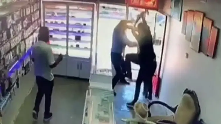 Şanlıurfa’nın Suruç ilçesinde telefon satış ve tamir dükkanına giren bir kişi, arkasından koşarak gelen 2 şüphelinin satır ve keserli saldırısına uğradı. Saldırı anı kameralara yansıdı.