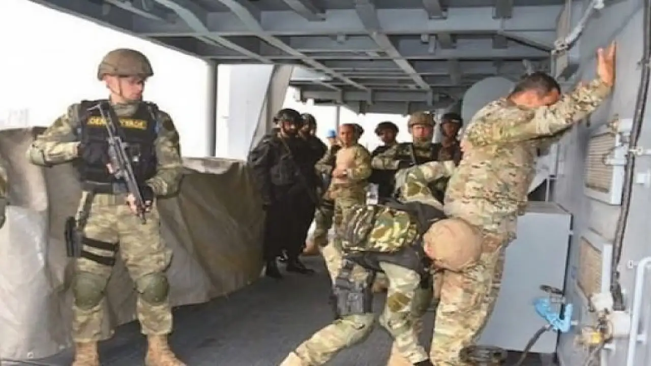 Doha Limanı’na demir atan TCG Gökçeada fırkateynindeki Sualtı Taarruz komandaları, Katar Silahlı Kuvvetleri Personeli’ne “deniz güvenliği” eğitimi verdi.
