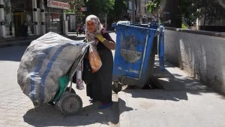 Ülkesindeki iç savaştan kaçarak ailesi ile Şanlıurfa'ya yerleşen 61 yaşındaki Suriyeli kadın, ekmek parasını çıkarmak için her gün el arabasıyla yaklaşık 7 kilometre dolaşarak plastik ve karton topluyor.