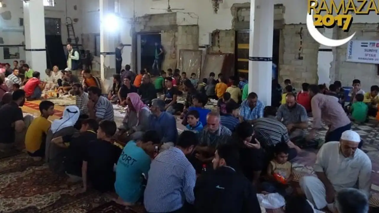 Sadakataşı Derneği, Çekmeköy Belediyesinin desteğiyle Suriye'nin Humus kırsalında camide iftar verdi.
